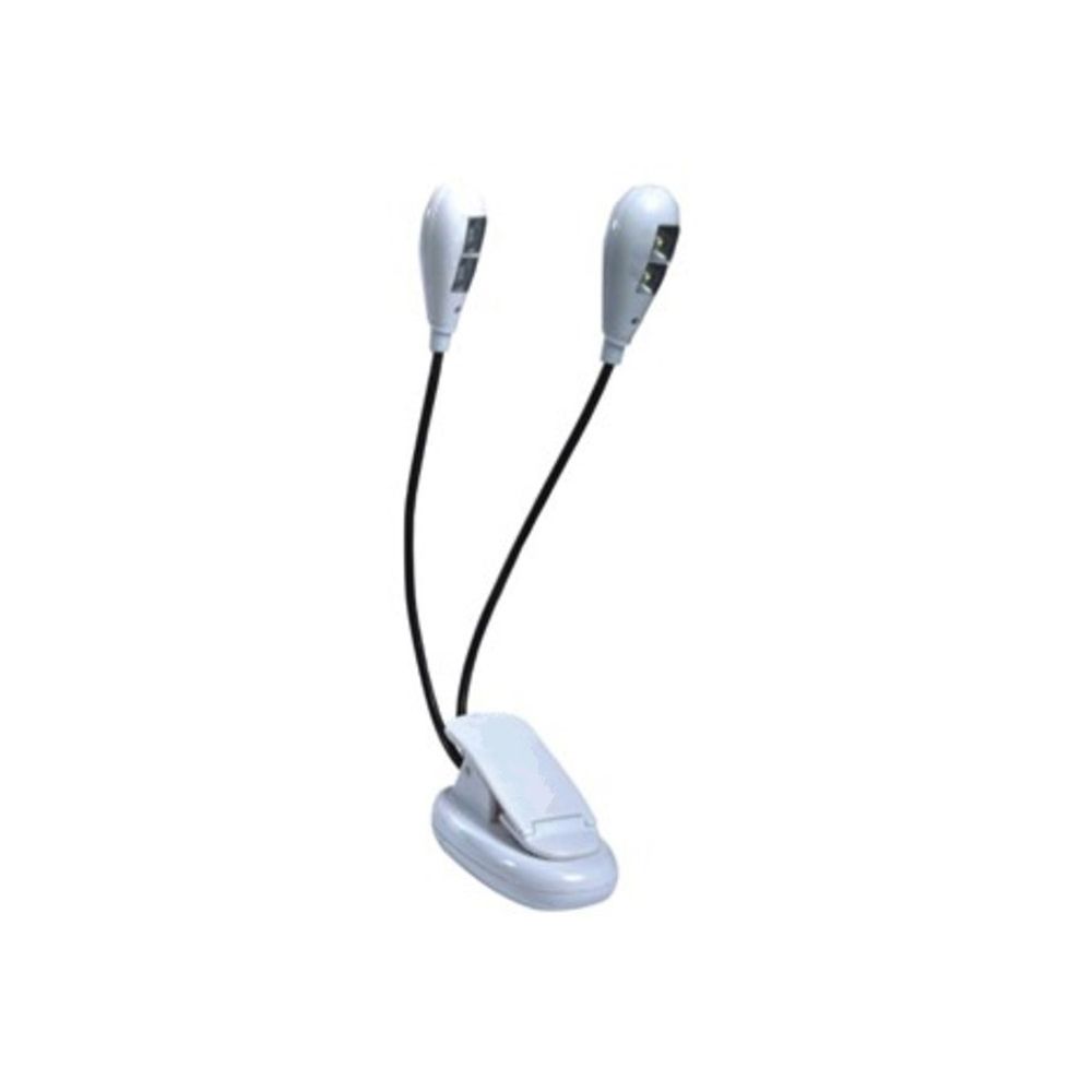 Aroma FL-9027WH Подсветка для пюпитра, 2х2 светодиода, крепление-прищепка, гибкие держатели, батареи 3хААА или через USB кабель (в комплекте), цвет белый
