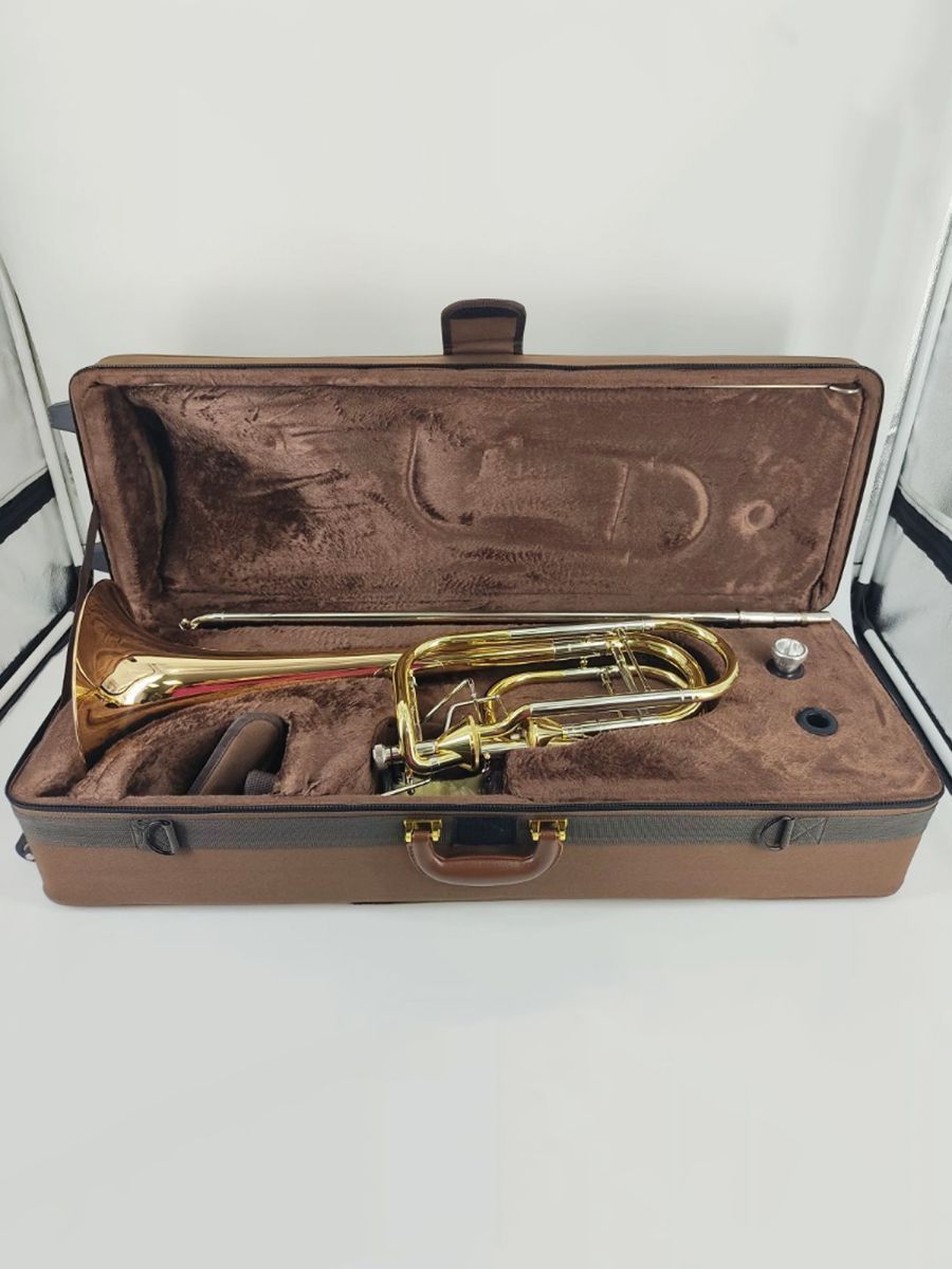 Artist SL-823L Тромбон бас Bb/F/Eb/D, два вентиля Тайера, раструб 241 мм, мензура 14.2 мм, настроечный крон мельхиор, кулиса мельхиор, покрытие золотой лак, облегченный кейс в комплекте