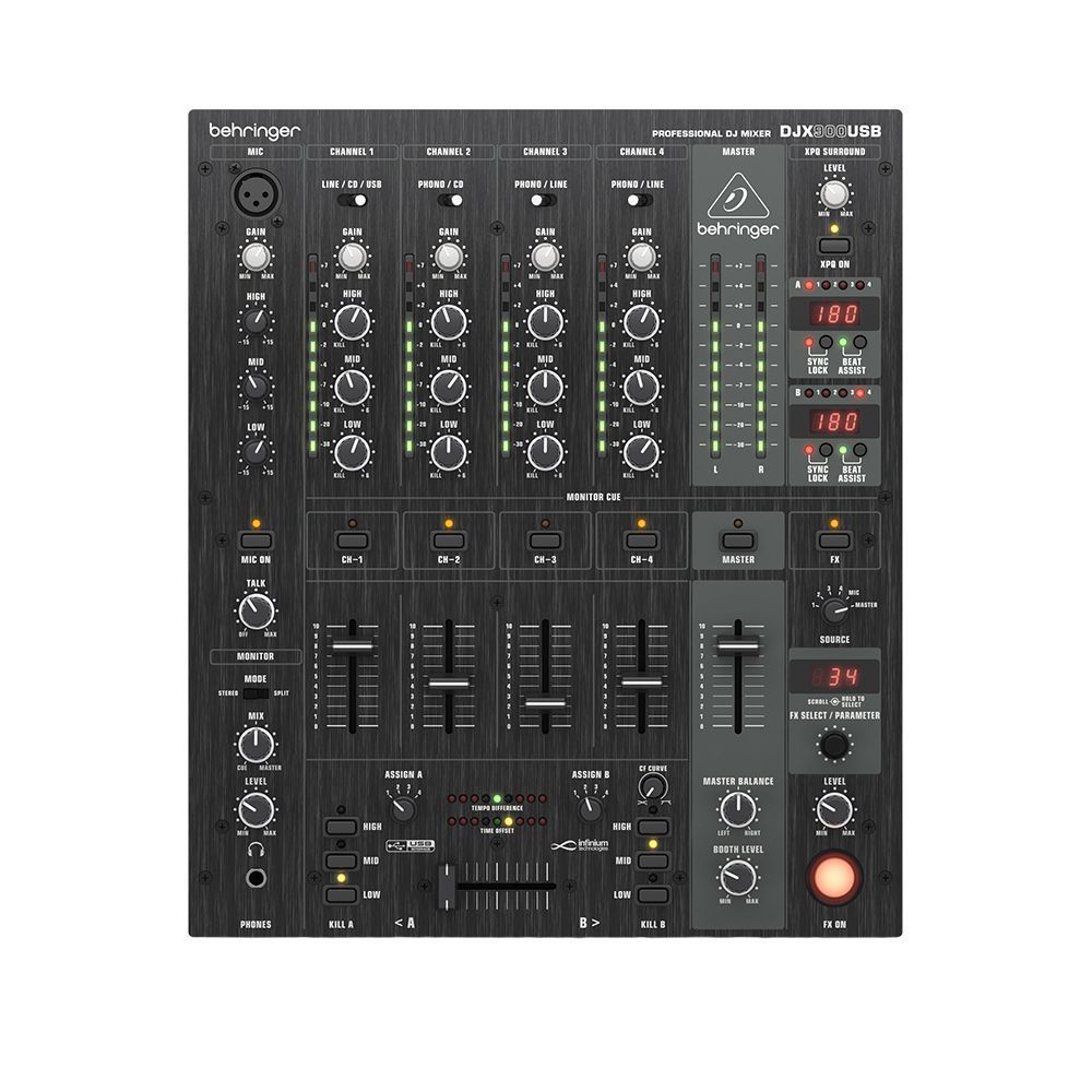 Behringer DJX900USB DJ микшерный пульт со счетчиком темпа, 5 входных каналов (4 стерео, плюс микрофонный), 3D-surround, процессор эффектов, VCA-кроссфейдер, USB аудио интерфейс