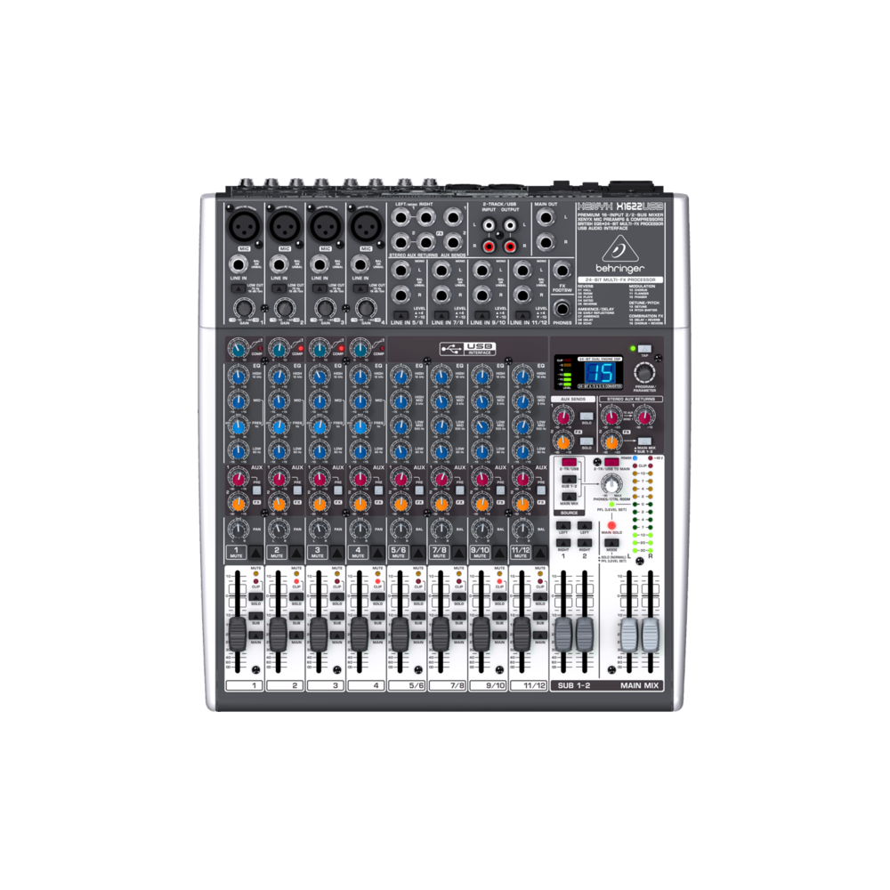 Behringer Xenyx X1622USB-EU Пульт микшерный компактный малошумящий, 4 моновхода, 4 стереовхода, 2 AUX-шины, процессор эффектов, внешний USB-интерфейс, встроенный импульсный блок питания, energyXT2.5