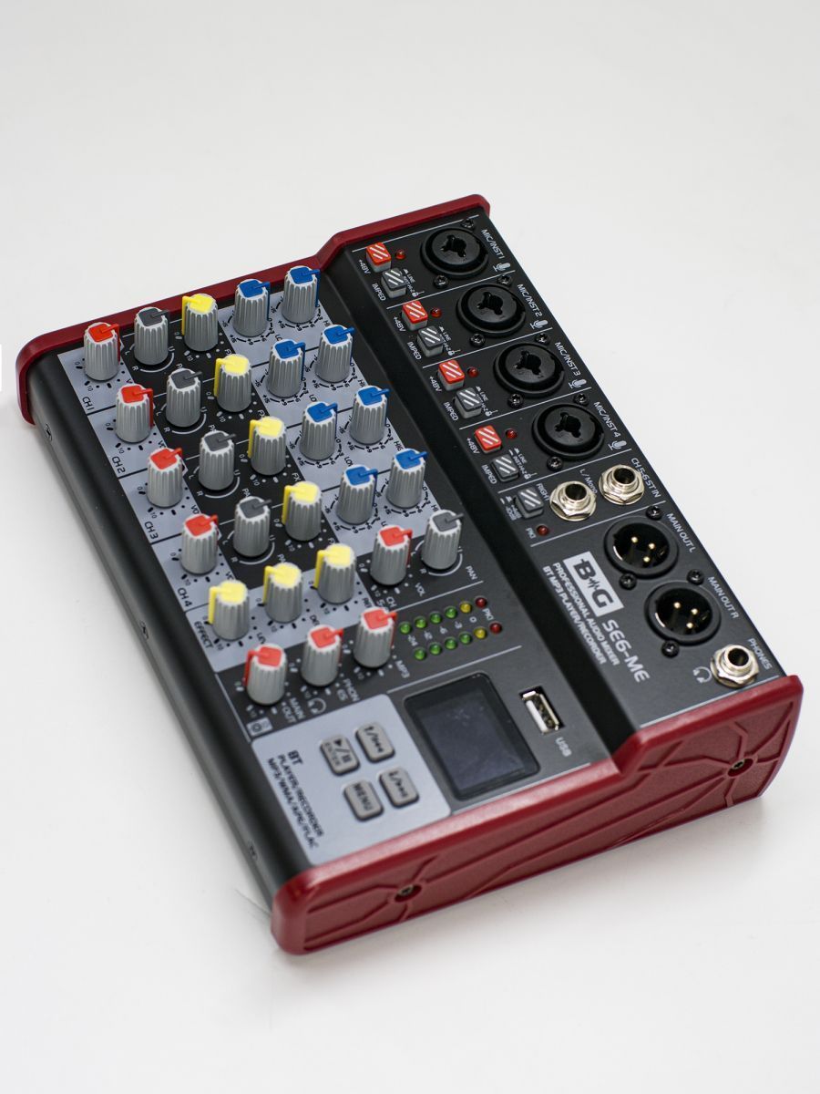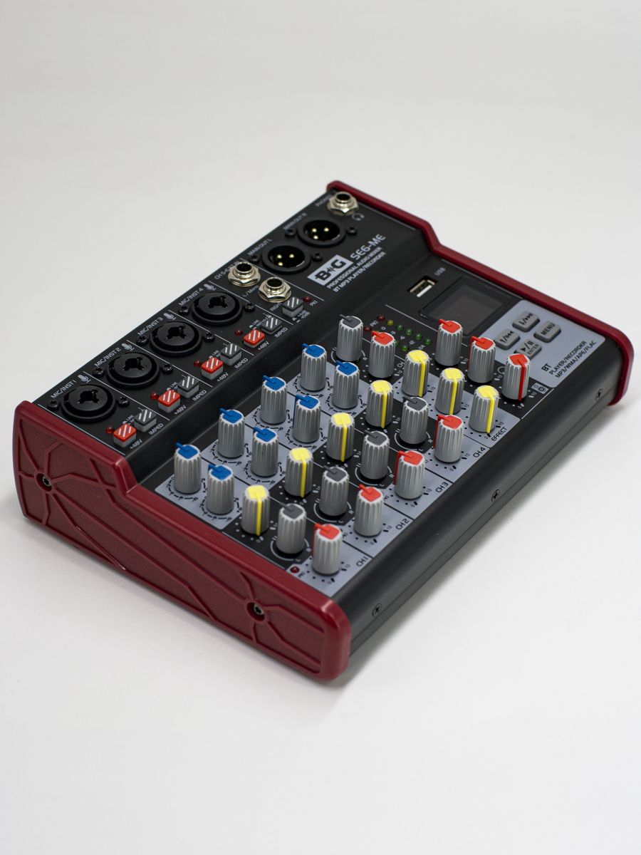 Компактный микшер может быть использован для проведения концертов, публичных мероприятий, торжеств и презентаций. B&G SE6 – это надежный и бюджетный микшерный пульт отличного качества.