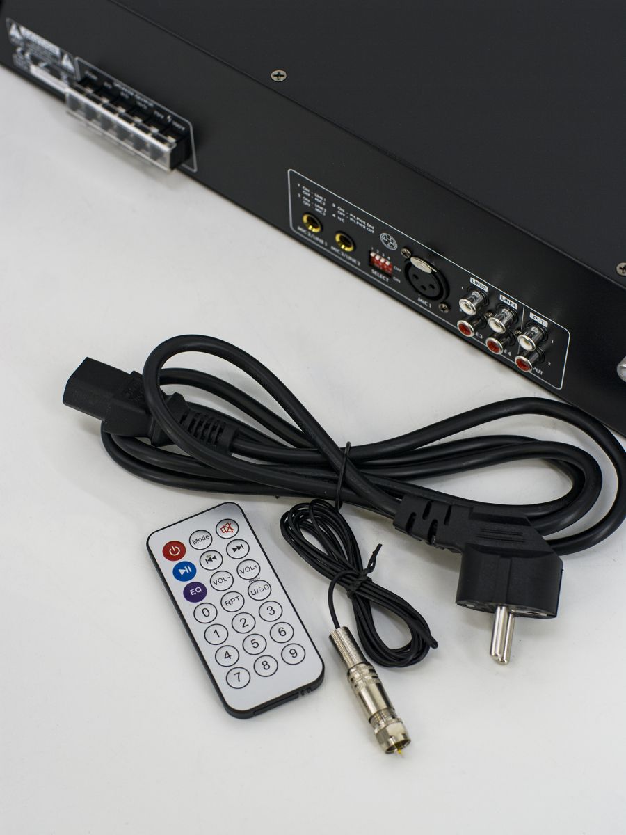 Мощность усилителя, RMS/пик, Вт: 240 Входы: 3 Mic, 2 Aux Выходы: 70V/100V/4-16ohm Размер (ШхВхГ): 484×88х335 мм Вес: 9,6 кг Дополнительно: Mp3, SD, FM тюнер, Bluetooth