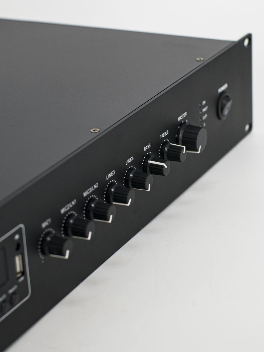 CMX Audio является лидером по производству трансляционного оборудования в Китае. Ассортимент товаров CMX Audio, который мы хотим вам представить, включает микшеры усилители, громкоговорители настенные и потолочные, а также всепогодные звуковые колонны и громкоговорители. Для создания совершенных продуктов компания CMX Audio использует сырье, прошедшее строгий 6-ступенчатый контроль качества QC и QA. Эта система контроля качества соответствует стандартам ISO9001 и ISO14001. Большая часть продуктов CMX Audio соответствует сертификатам CE, RoHS, CB, EN54-16, C-tick, FCC либо UL, и EN54-24. Процесс создания товаров CMX Audio сопровождается высокой целью – быть экспертами в производстве трансляционного оборудования и предвосхищать ожидание клиента. Микшер усилитель 240ватт, Mp3, SD, FM тюнер, Bluetooth, 3 Mic, 2 Aux, 70V/100V/4-16ohm.