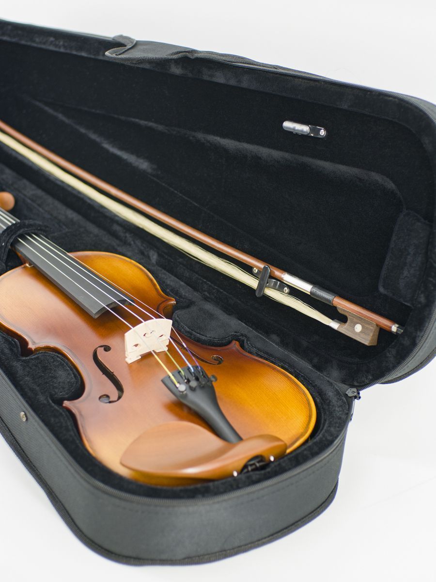 HMI HV-200HF 3/4 Скрипка Student 3/4, в кейсе, смычок, канифоль, верхняя дека - массив ели, нижняя дека, обечайки - массив клена, гриф - черное дерево, матовая