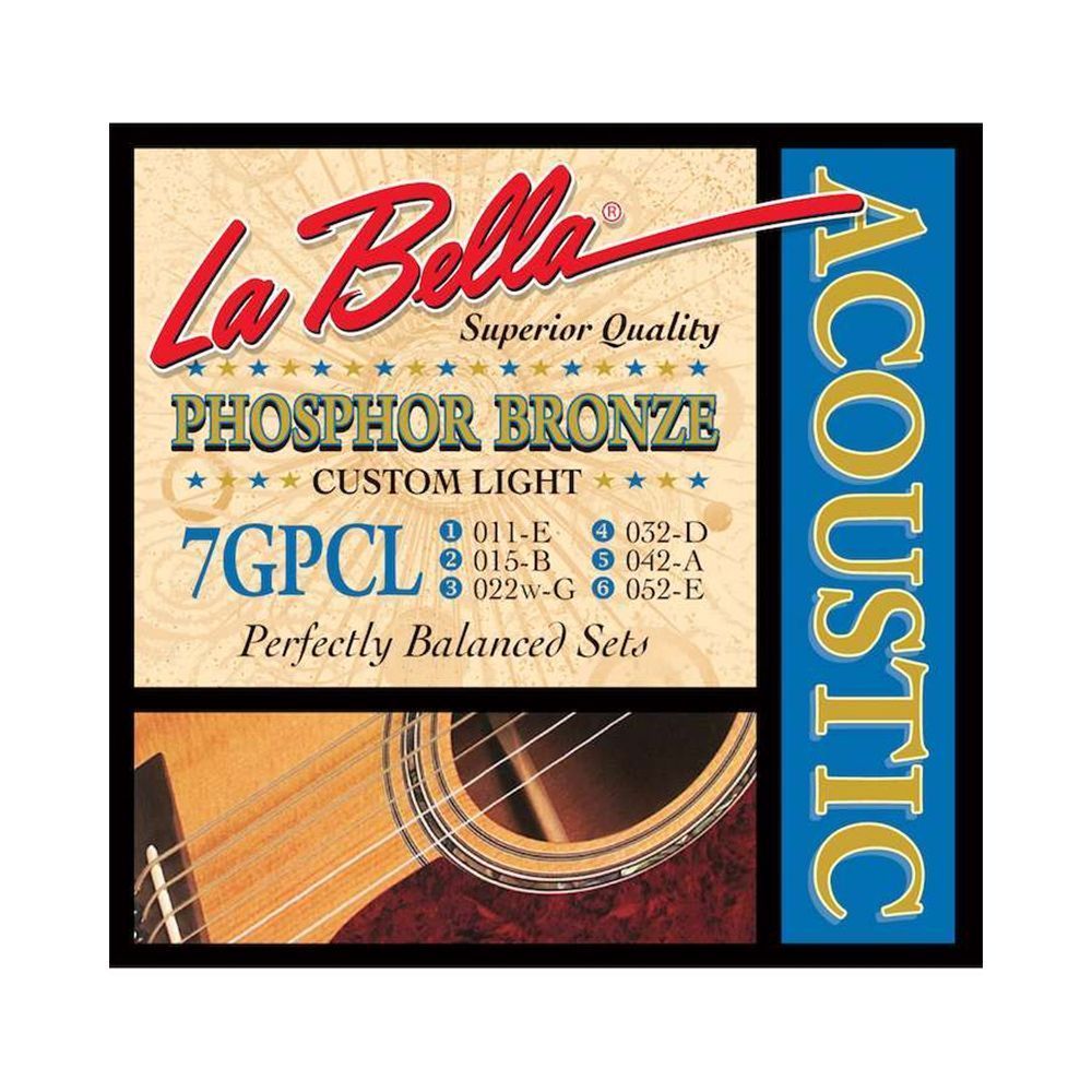 La Bella 7GPCL Струны для акустической гитары "Phosphor Bronze" Custom Light, стальные, 3,4,5,6 - обмотка - фосфорная бронза