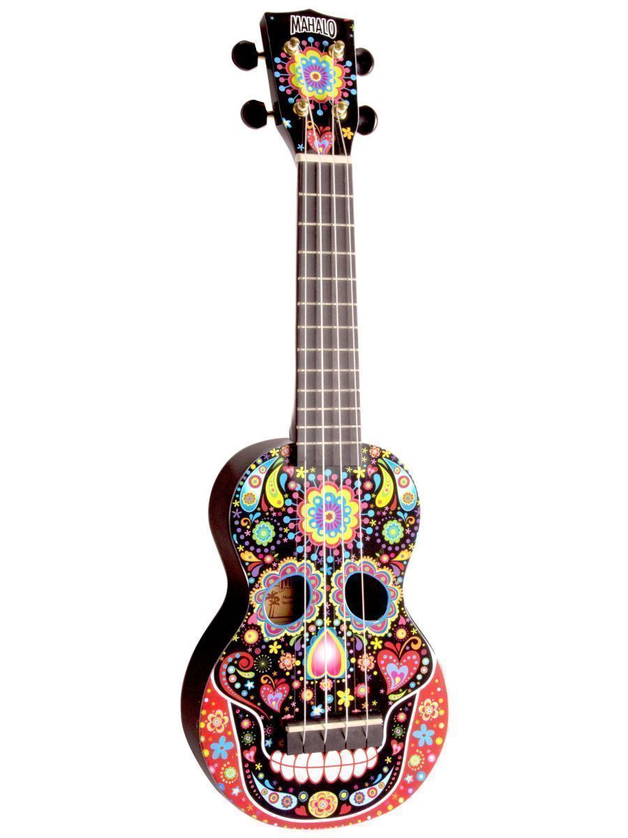 Mahalo MA1SKBK Укулеле сопрано с чехлом, корпус - липа, гриф - габон, накладка на гриф махагони, струны Aquila Super Nylgut, цвет - Black, лакированная, рисунок - череп, серия Art Soprano