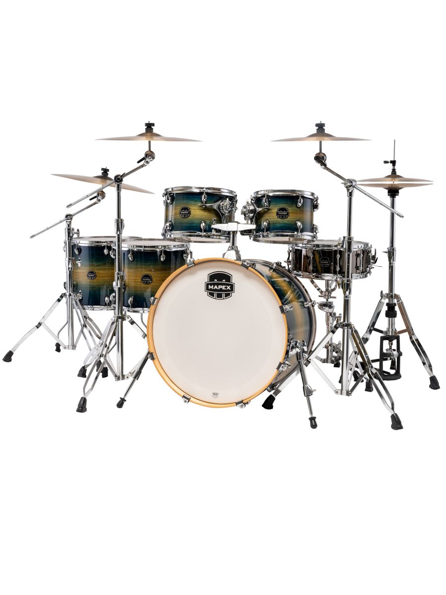 Серия: Armory Корпус: клен/береза, 8 слоев, толщина 7,55 мм Система крепления томов : SONIClear™ Пластики: Remo UC Double-ply Clear Batter, UX Clear Bottom для подвесных томов Remo UT Пластики: Clear Batter head(with dampeningring), UC Coated Reso Head для бас-барабана Ножки напольного тома: SONIClear™ Цвет: Rainforest Burst * Набор стоек, педаль и стул не включены в комплект. ** Для комплектации ударной установки рекомендуем использовать хардваер Mapex 800 серии или комплект стоек с педалью Mapex HP8005