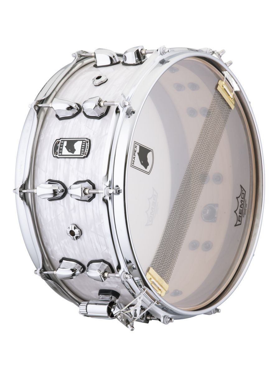 Серия: Black Panther Heritage Размер: 14'' x 6'' Корпус: клен; 5 слоев Фурнитура: хром Ободы: Sonic Saver Цвет : WHITE PSICOBLOC PEARL
