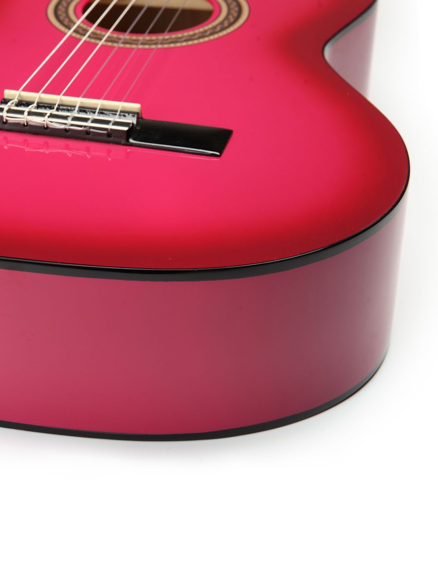 Valencia VC104PKS – полноразмерная классическая гитара отличного качества. Модель имеет универсальный характер звучания, поэтому подходит для различных музыкальных жанров и стилей игры. Корпус инструмента изготовлен из липы, которая обладает усиленными резонансными особенностями. Гриф из нато имеет удобную форму и оптимальную ширину. Накладка и нижний порожек выполнены из махагона. Нейлоновые струны, установленные на комфортной для игры высоте, делают гитару удобной для представительниц прекрасного пола. Надежная колковая механика обеспечивает мягкий и точный ход, легкость при настройке, а главное – хорошо держит строй. Насыщенный розовый цвет и глянцевая отделка придают инструменту особую оригинальность и эффектность. Valencia VC104PKS – стильная гитара, которая подчеркнет вашу индивидуальность.