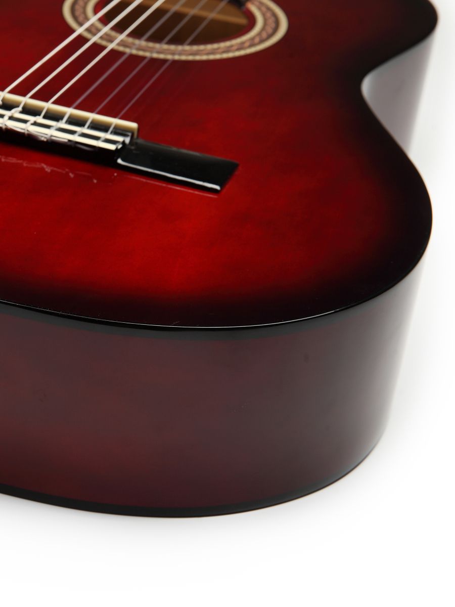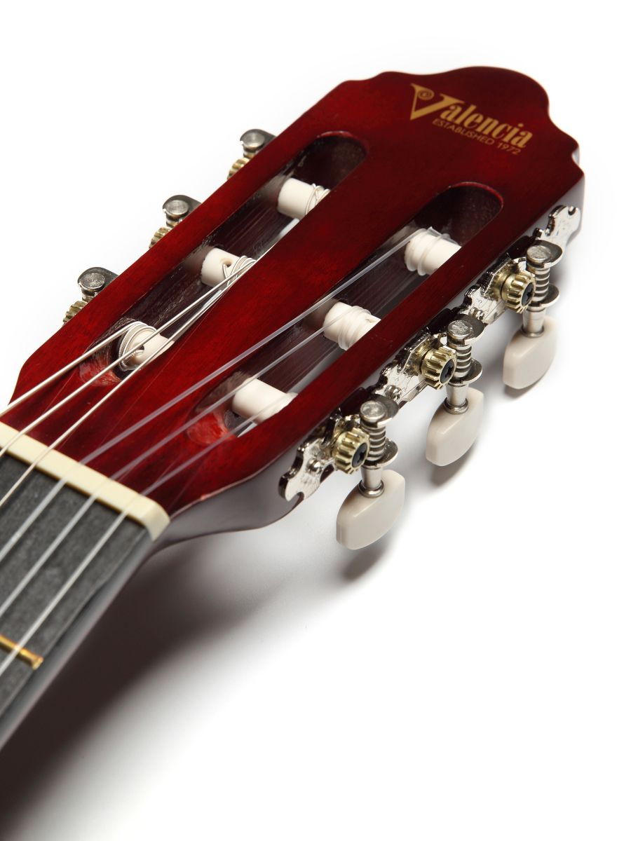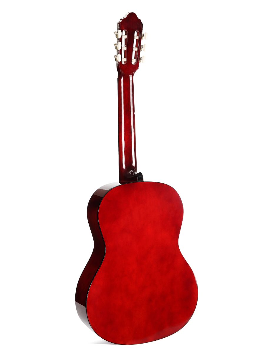 Valencia VC104RDS – это полноразмерная классическая гитара, которая станет прекрасным вариантом не только для начинающих музыкантов, но и для опытных исполнителей. Корпус инструмента изготовлен из липы, которая обладает усиленными резонансными особенностями. Гриф из нато имеет удобную форму и оптимальную ширину. Накладка из клена, нижний порожек из махагона. Нейлоновые струны, установленные на комфортной для игры высоте, делают гитару удобной даже для самых юных исполнителей. Надежная колковая механика обеспечивает мягкость хода и прекрасно держит строй. Классическая гитара Valencia VC104RDS отличается ярким, объемным и насыщенным звучанием. Огромным преимуществом инструмента является доступная стоимость.